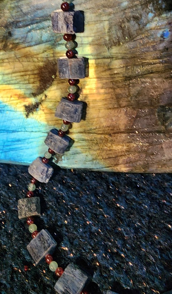 Kyanite’s high spiritual vibration offers a door to compassion for oneself and for others. Garnet enhances compassion with Jade and Garnet’s offer of protection from negativity and Jade’s harmony along the way.
