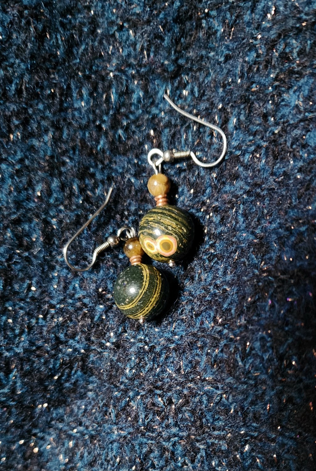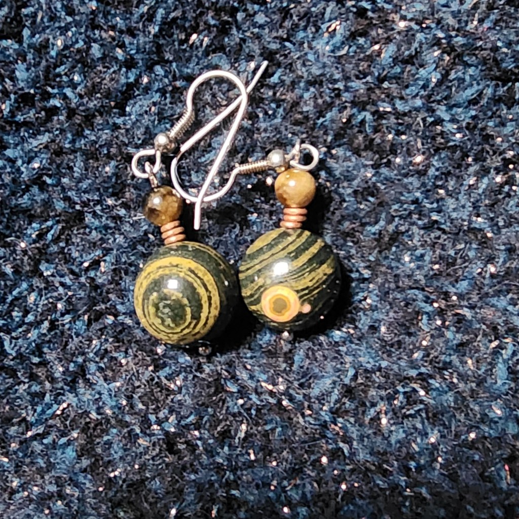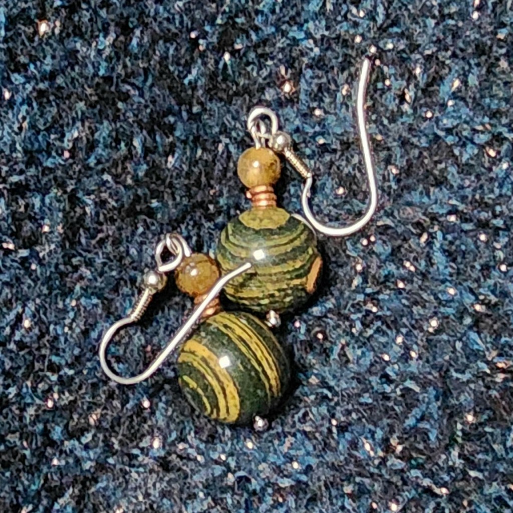 Ocean Jasper, Tourmaline, Solid Copper, Steel Earwires